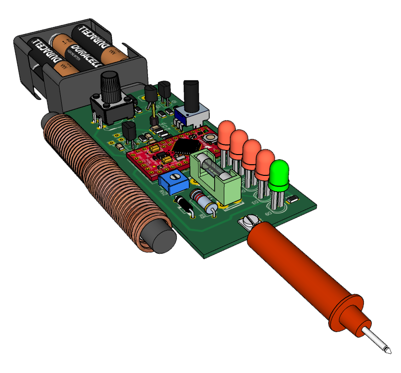 Пробник позволяет измерять напряжение электросети от 0 до 400В, сопротивление обмоток намоточных изделий от 0 до 1000 Ом и осуществлять прозвонку цепи.