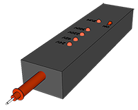 Пробник позволяет измерять напряжение электросети от 0 до 400В, сопротивление обмоток намоточных изделий от 0 до 1000 Ом, осуществлять прозвонку цепи и поиск скрытой проводки.