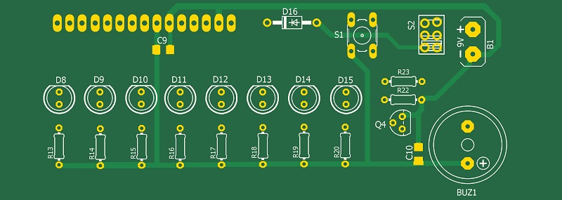 Для определения скрытой проводки необходимо удерживая кнопку S1 поднести пробник к стене. При наличии проводки включается светодиод D6 и бузер BUZ1. Прошивка разработана в среде HORIZONT CONFIGURATOR