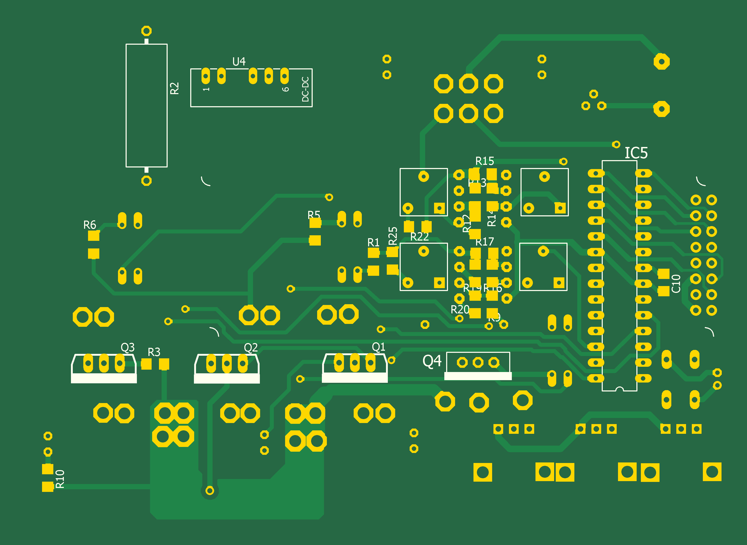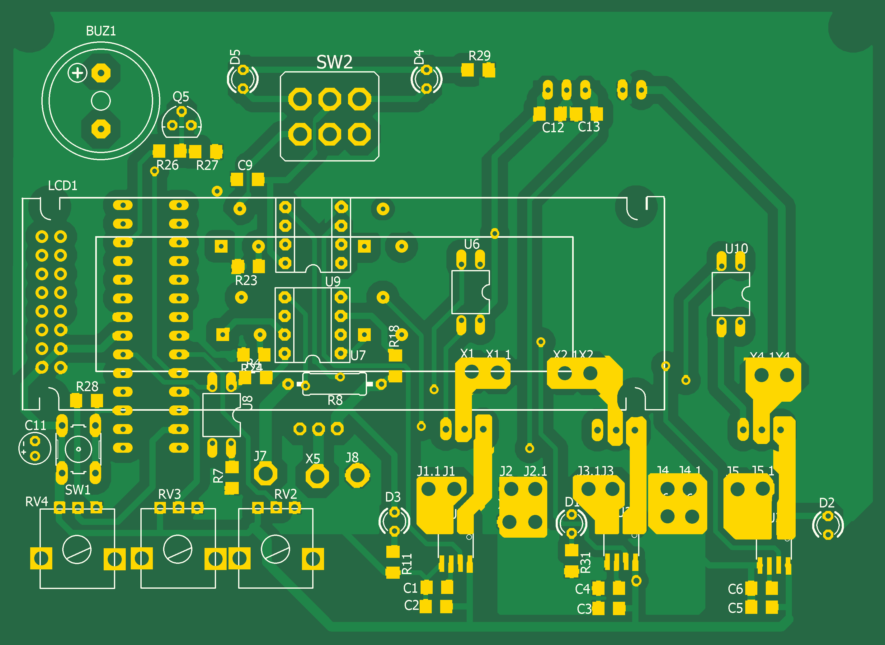 При превышении тока на выходе -12В на выходе микропроцессора PD4 включается лог.1 , оптрон U8 выключается и транзисторный ключ Q4 запирается, отключая выходы +12В и -12В блока питания. При превышении тока на любом выходе срабатывает зуммер.