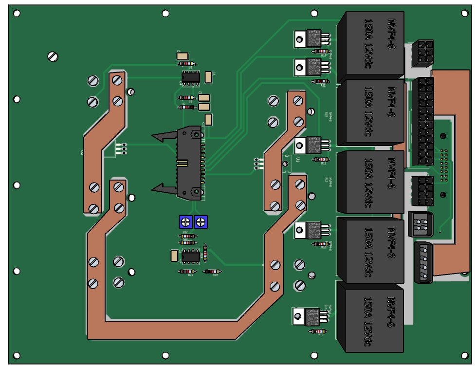 Температурные сенсоры применяются для измерения температур радиаторов. При температуре 45 град. включаются вентиляторы. При температуре выше 100 град. нагрузка отключается. Вентиляторы управляются с помощью реле RL6,RL7. Подробнее на видео.