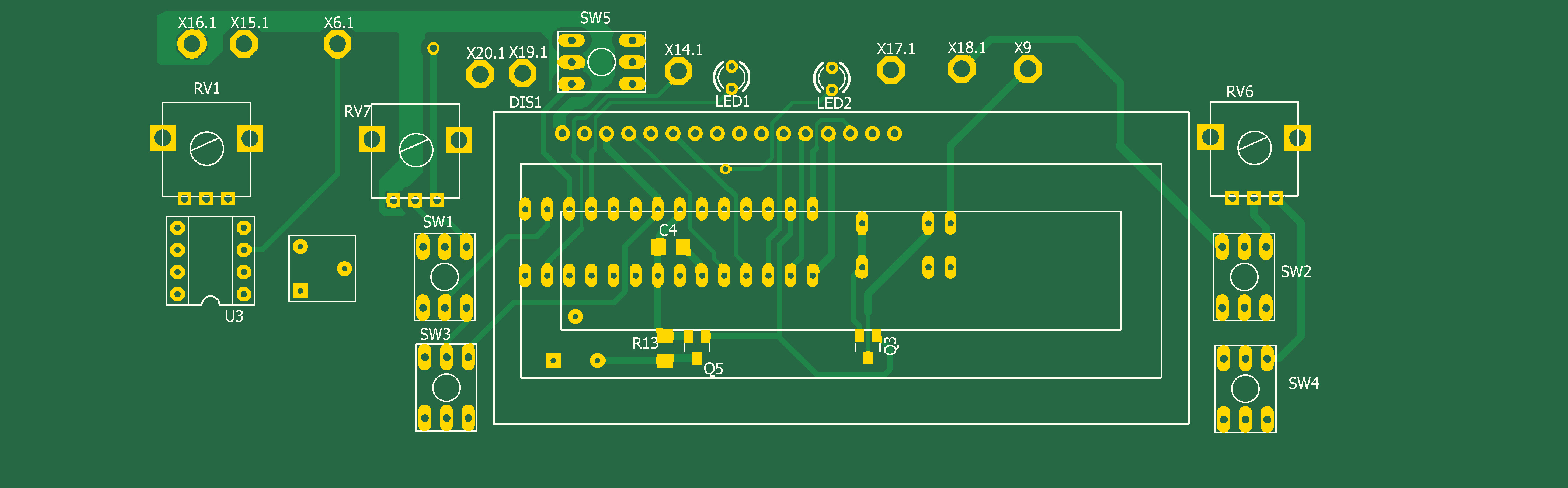 Для установки порога срабатывания при перегрузке по току необходимо переключатель SW1 переключить в нижнее по схеме положение, подстроечником RV7 установить требуемый порог и нажать кнопку SW3. При этом установленный порог запишется в память процессора.