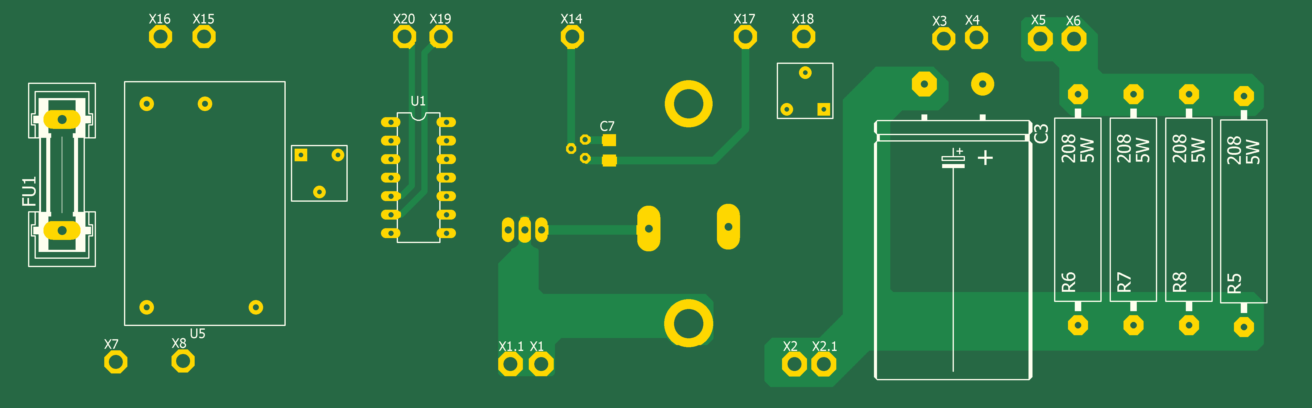 Для установки порога срабатывания при перегрузке по напряжению необходимо переключатель SW2 переключить в нижнее по схеме положение, подстроечником RV6 установить требуемый порог и нажать кнопку SW4. При этом установленный порог срабатывания по напряжению запишется в память процессора.