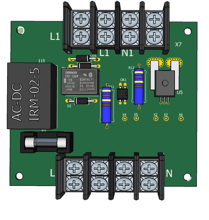Устройство выполнено на 2-х платах - плате силовой и плате упрввления, размещенных в корпусе DIN. Рядом на DIN рейке установлено УЗО. Работу схемы можно посмотреть на видео.