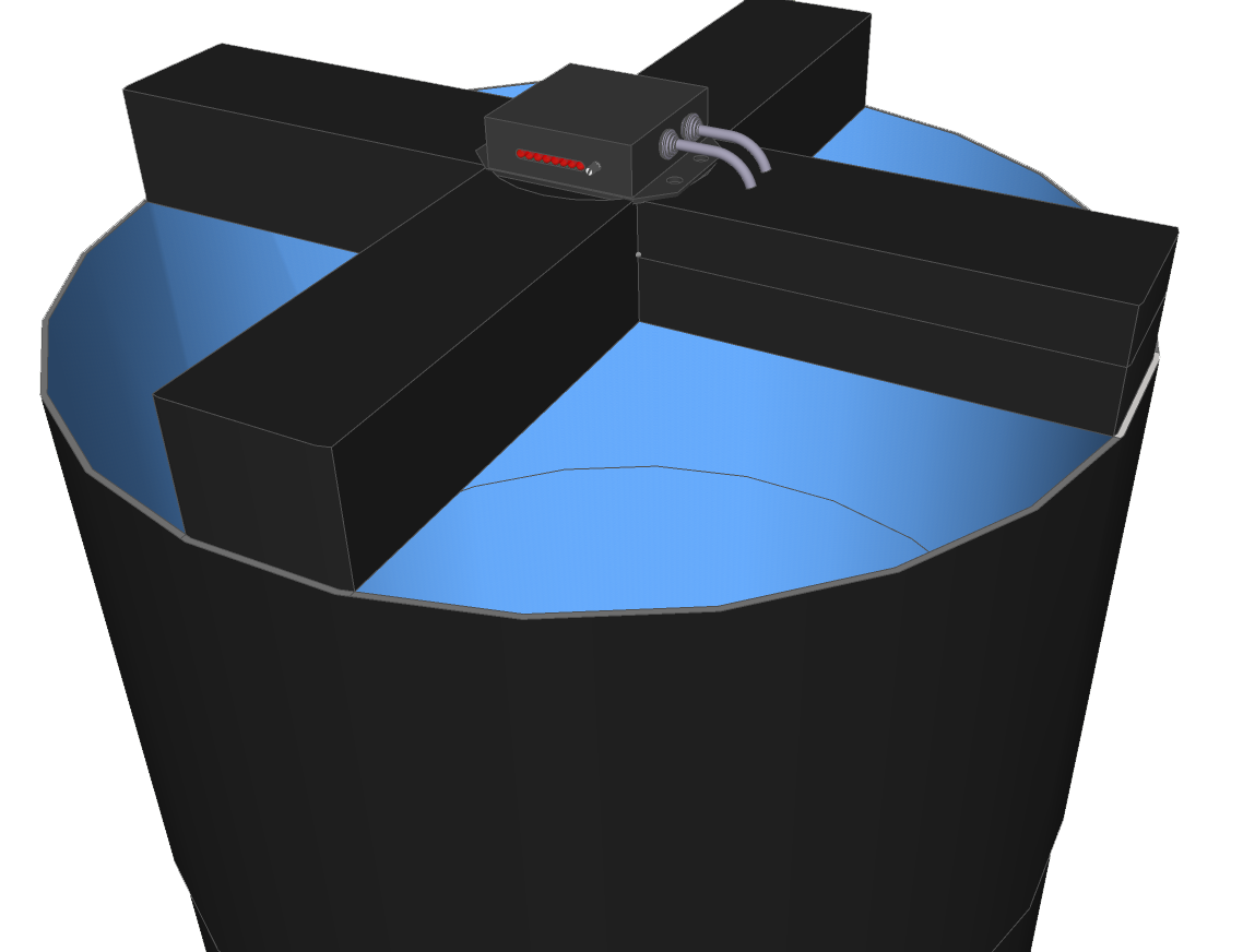 Позволяет измерять уровень воды в баке глубиной от 1,5 до 3м и управлять насосом. Применяется индикация из 8-ми светодиодов. Возможно как ручное так и автоматическое включение и выключение насоса. В качестве сенсора применяется ультразвуковой сенсор SRF-05, работающий в диапазоне 22...450 мм (с точностью до 2 мм). Ультразвуковые датчики плохо работают во влажной среде, поэтому устройство необходимо устанавливать на расстоянии 20-30см от верха бака, и смонтировано во влагозащищенном пластиковом корпусе как показано на рис.