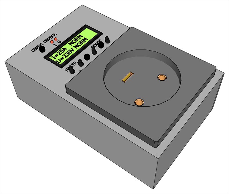 При превышении тока или напряжения реле срабатывает реле RL1 и включается бузер. Сбрасываются реле и бузер нажатием кнопки SW3. При превышении тока в верхней строке LCD индикатора включается HIGH. При превышении напряжения HIGH включается в нижней строке LCD индикатора.