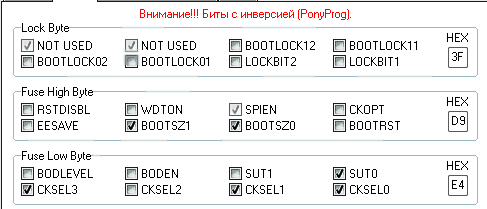 FUSE на внутренний генератор МК, частотой 8 MHz