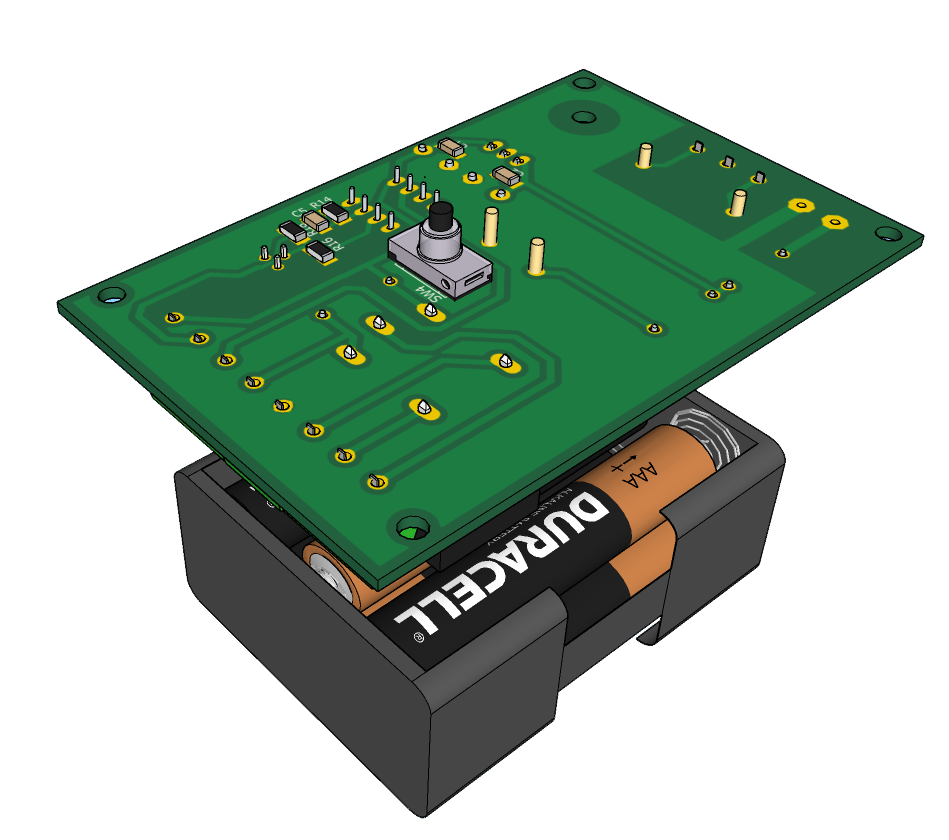 Замок выполнен в 2-х корпусах. В одном корпусе размещена плата для набора чисел, и светодиоды.В другом корпусе - все что недоступно посторонним. Кроме того, замок оснащен резервным питанием 9В от шести батареек АА.