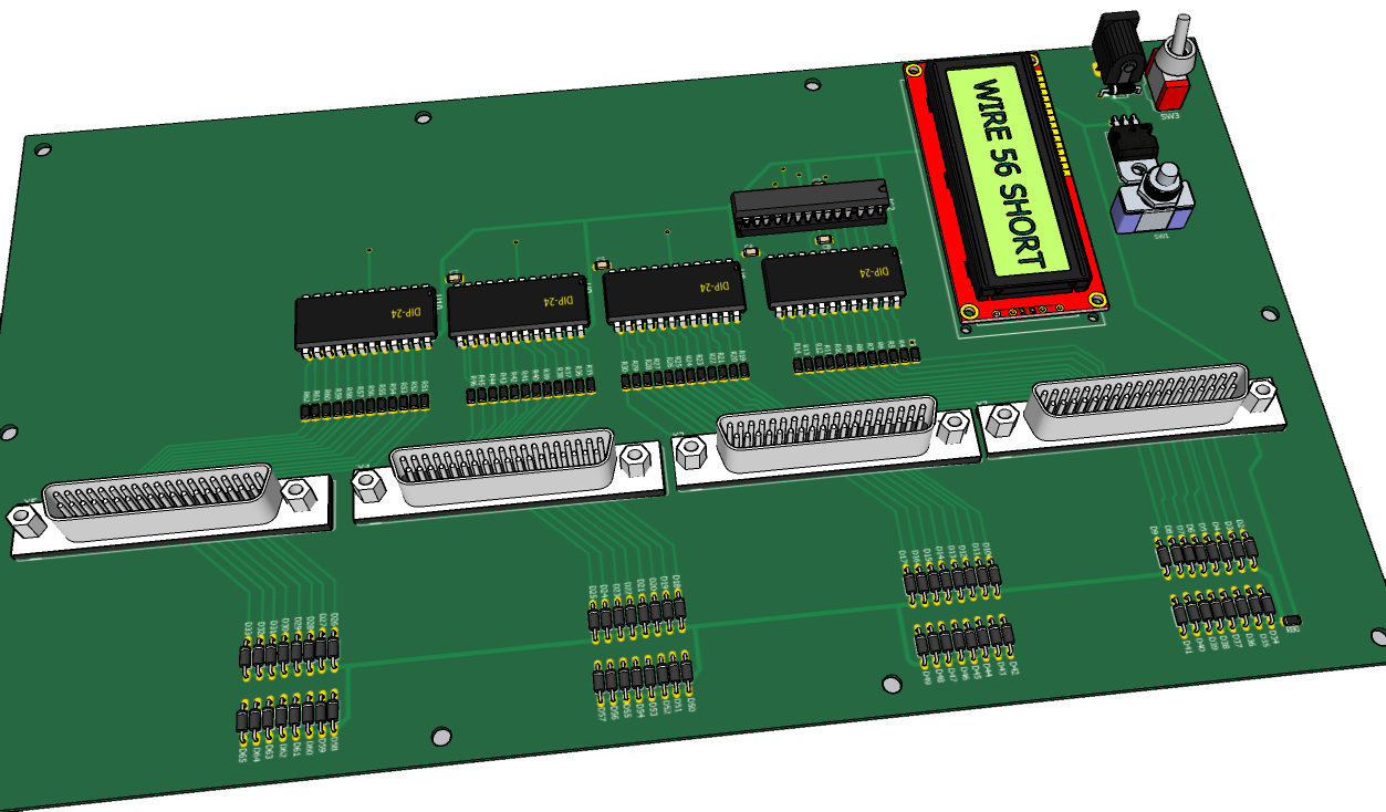 Устройство позволяет проверять на замыкание и обрыв до 32 жил в плоском кабеле. Прибор реализован на Ардуино Нано с двумя 16-ти битными расширителями выходов.