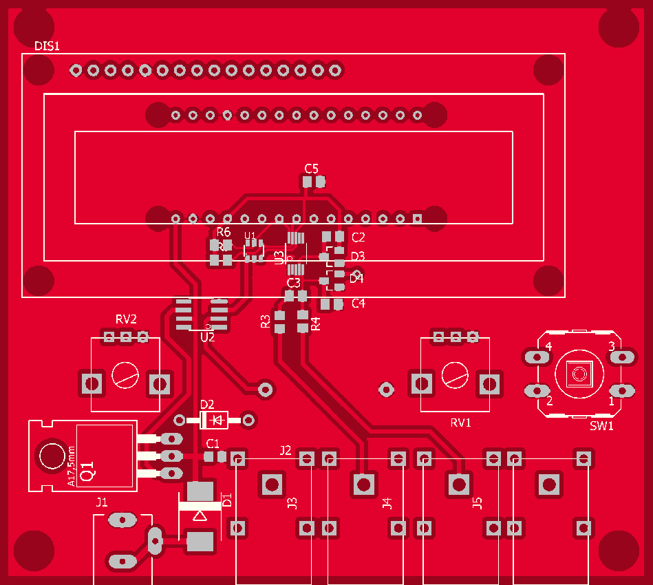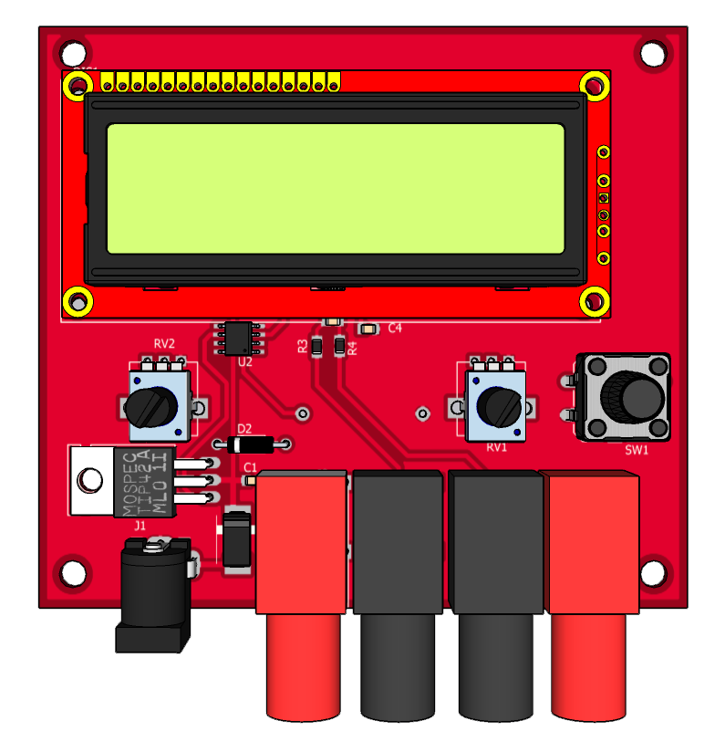 Источник тока выполнен на операционном усилителе U2 и полевом транзисторе Q1. Источник имеет 2 режима. При измерении сопротивления в диапазоне от 0.01 - 1 Ом выходной ток источника - 1А. При измерении сопротивления от 1 до 20 Ом выходной ток 100мА. Это реализовано для повышения точности измерения сопротивления от 0.01 до 1 Ом и для ибежания рассеивания мощности при измерении сопротивления от 1 до 20 Ом. Управляется источник тока кнопкой SW1 с помощью ЦАП U1, подключенному к Ардуино через I2C. Измеряется сопротивление с помощью 4-х проводных зажимов Кельвина. Напряжение измеряетсяс помощью АЦП U3, подключенному к Ардуино также через I2C. Индикация диапазона и значения измеряемого сопротивления осуществляется с помощью 2-х строчного 16-ти символьного LCD дисплея.