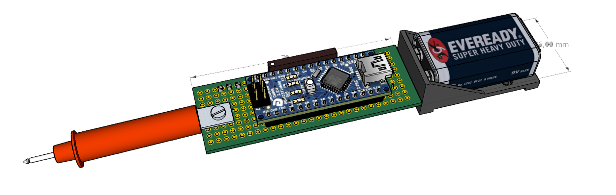Переменным резистором RV1 устанавливается уровень выходного сигнала, переменным резистором RV2 - частота. Конструктивно устройство выполено на макетной плате. Питание от аккумулятора 9В.