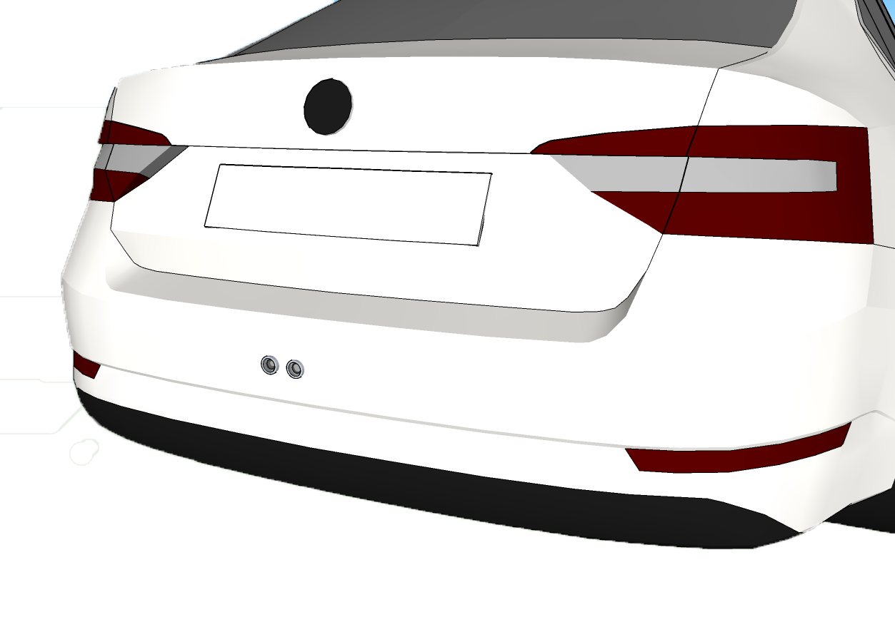 Ультразвуковой сонар, генератор импульсов U2 и сонар установлены в отдельном корпусе, который закрепляется на заднем бампере автомобиля, как показано на рис. ниже