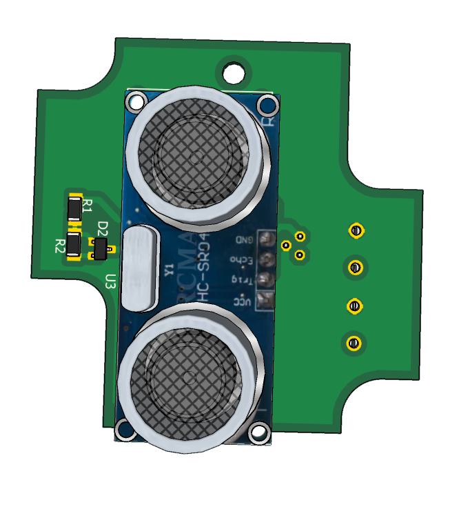 Принцип работы состоит в том, что генератор U2 типа NE555 генерирует короткие импульсы TRIG, которые периодически запускают передатчик сенсора. Передающая мембрана начинает генерировать сигнал с частотой около 40кГц. Этот сигнал отражается от препятствия и поступает на приемную мембрану.Приняв этот сигнал, сенсор выдает импульс ECHO. Длительность импульса ECHO пропорциональна расстоянию до препятствия.