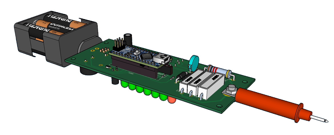Пробник позволяет измерять напряжение электросети от 0 до 400В, сопротивление обмоток намоточных изделий от 0 до 1000 Ом и осуществлять прозвонку цепи.