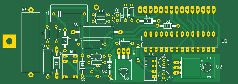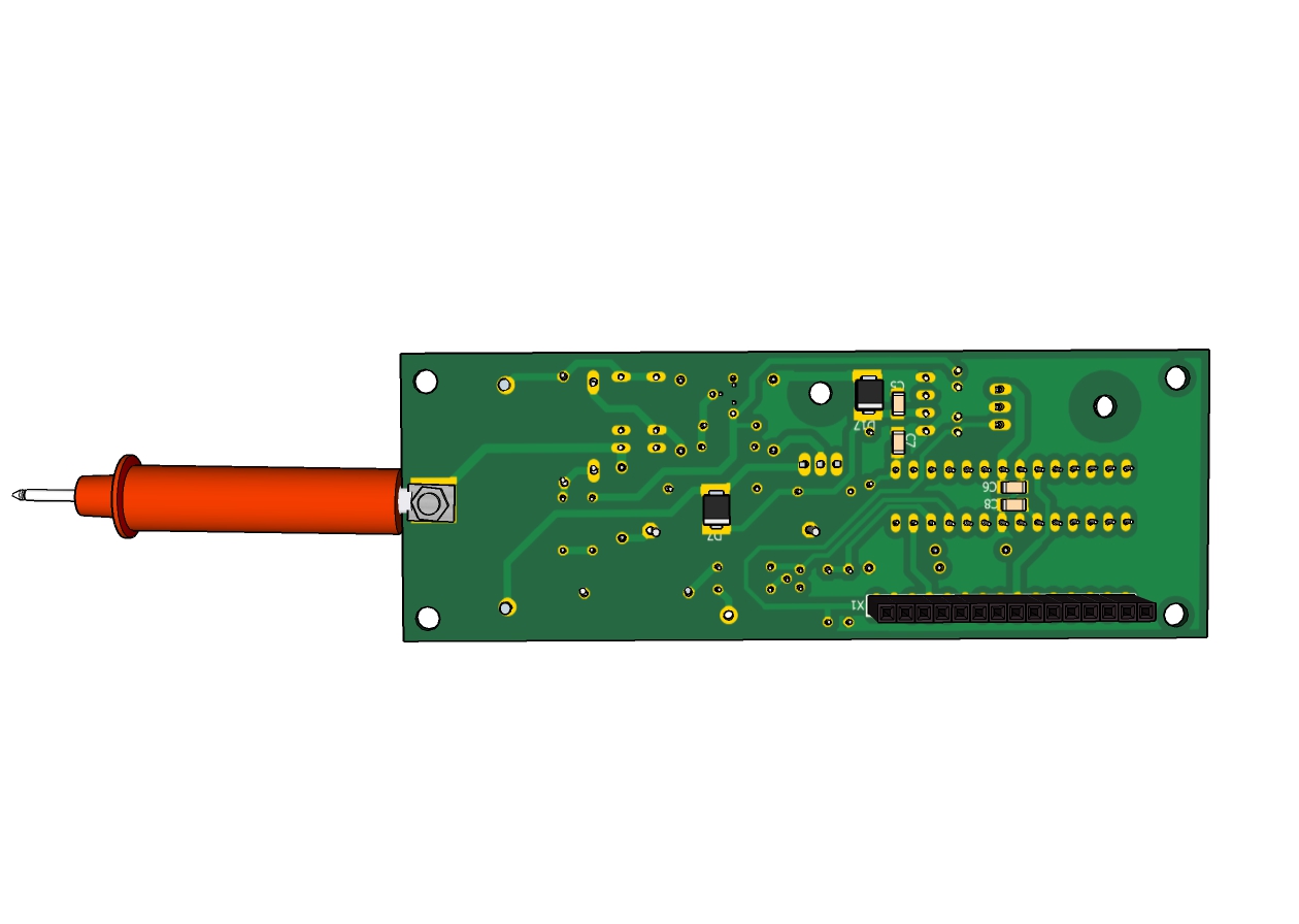 Для определения скрытой проводки необходимо удерживая кнопку S1 поднести пробник к стене. При наличии проводки включается светодиод D6 и бузер BUZ1. Прошивка разработана в среде HORIZONT CONFIGURATOR