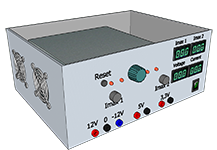 Блок питания обеспечивает 2-х полярное напряжение ±1,25.....±13В и ток до 10А с регулируемым порогом ограничения тока