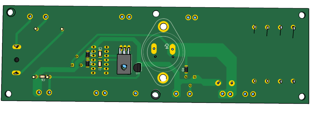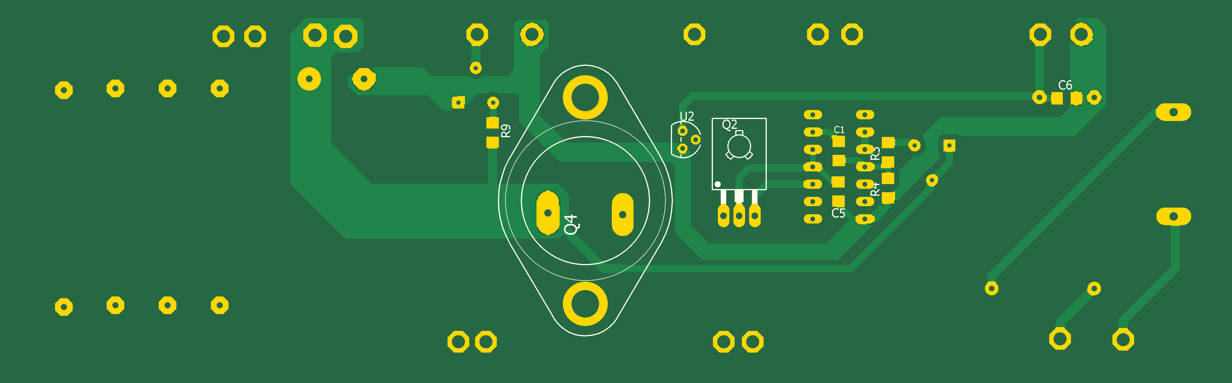 Схема устройства собрана на широко распространенном линейном регуляторе напряжения U1 типа LM723 (UA723). Для обеспечения тока нагрузки до 16А к выходу регулятора через транзистор раскачки Q2 подключен транзистор Дарлингтона Q4 с максимальным током коллектора до 50А.