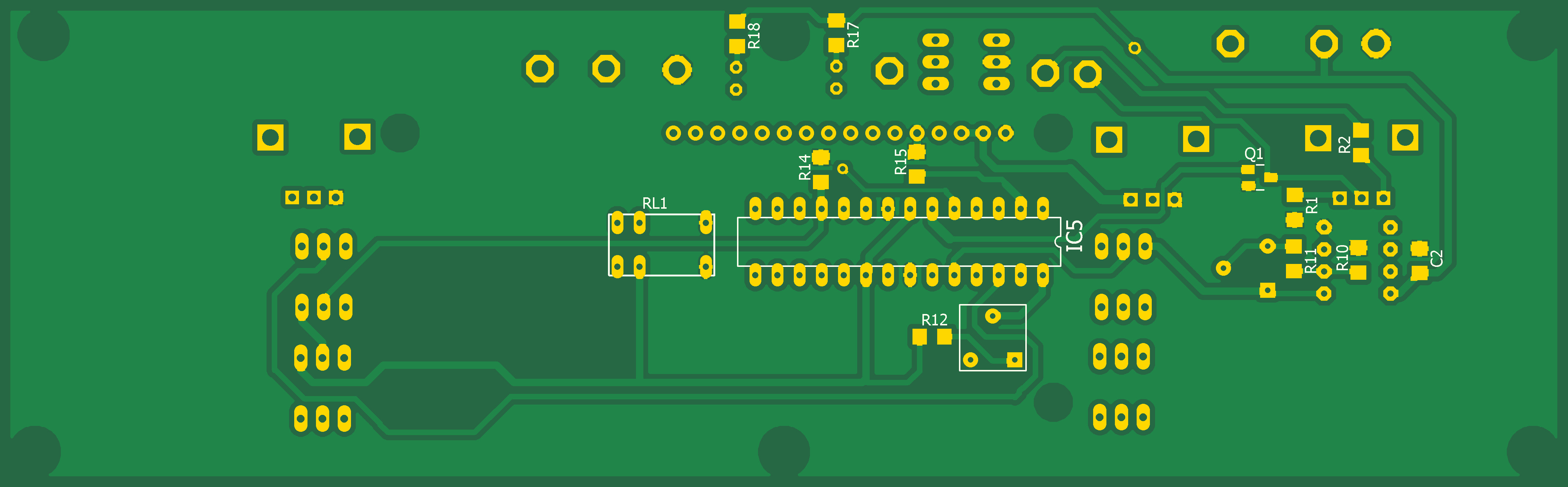 Для измерения температуры мощного транзистора Q4 применяется температурный сенсор U2. При нагреве транзистора до 100 град. на выходе микропроцессора PD7 появляется лог.1, открывается транзистор Q3, срабатывает реле RL1, которое своими контактами включает вентилятор. Когда температура транзистора опускается ниже 70град. то вентилятор отключается. Резисторы R12, R13, RV3 и транзистор Q5 обеспечивают гистерезис при отключении вентилятора. Всё вышеописанное можно посмотреть на видео.