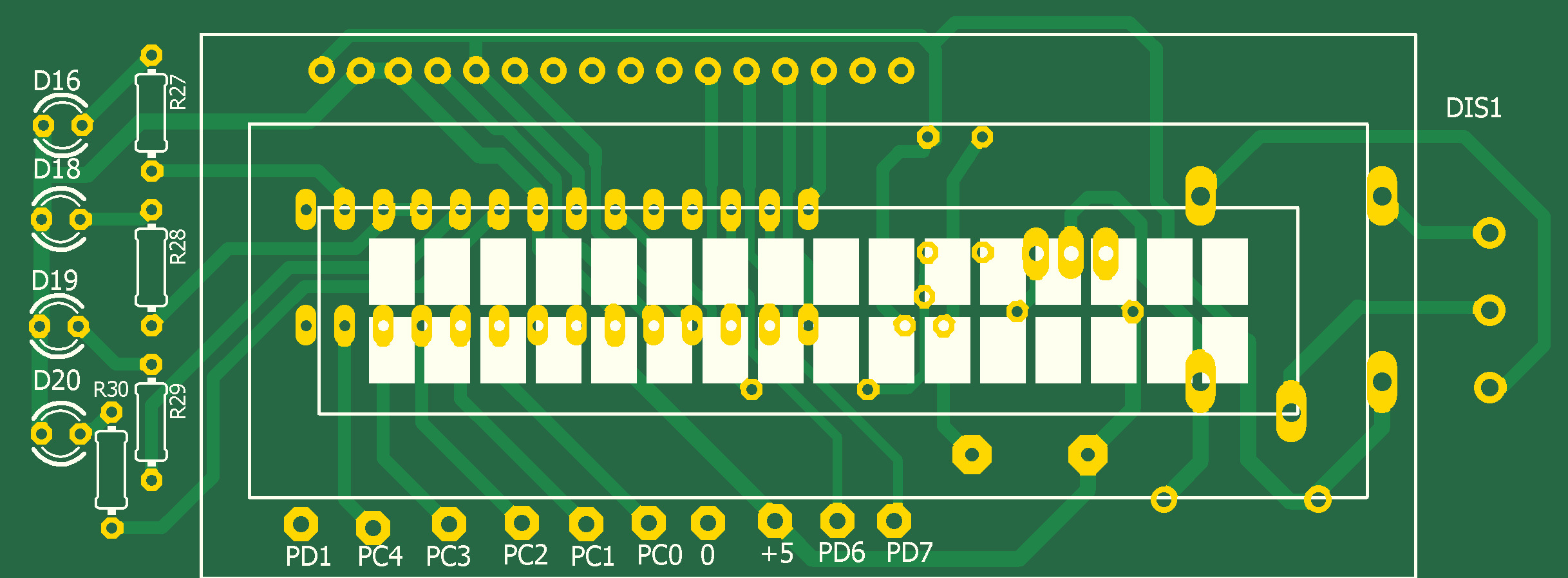 Любое превышение тока фиксируется включением светодиодов D18,D19 или D20.Cветодиоды выключаются нажатием кнопки SW2. Для установки порога срабатывания необходимо переключатель SW1 переключить в положение НАСТР, регулятором RV11 установить по показаниям LCD индикатора необходимое пороговое напряжение и регулятором RW10 включить светодиод D16.