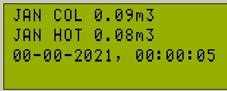 Для просмотра показаний счетчиков холодной и горячей воды по месяцам нажимать кнопку SW16. Для примера на картинке ниже приведены показания за январь.