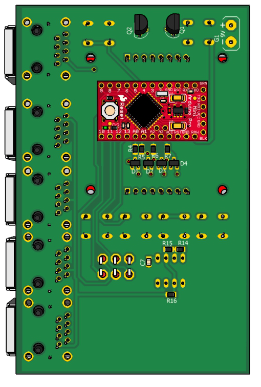 Напряжения каждого стабилитрона измеряются на аналоговых входах Ардуино Мини А3,А2,А1,А0 соответственно