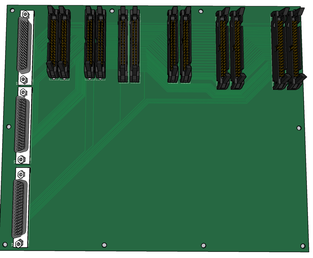 Эти платы соединяются с платой управления с помощью 4-х 37-проводных плоских кабелей с 37-ми контактными разъемами DSUB.