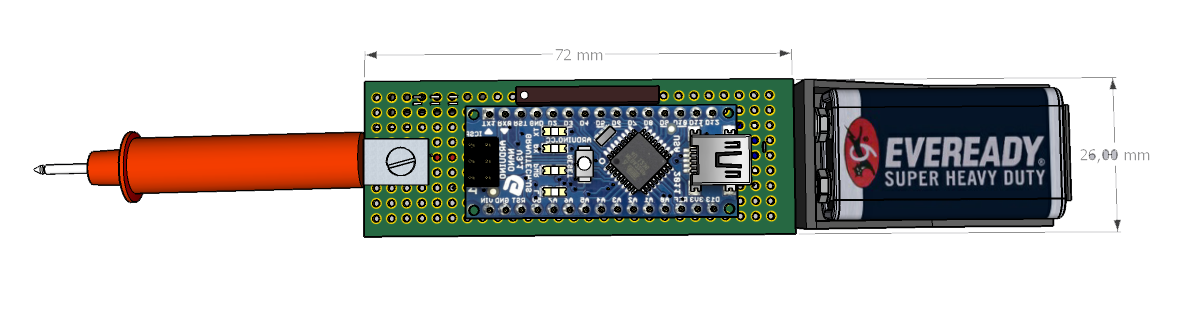 Переменным резистором RV1 устанавливается уровень выходного сигнала, переменным резистором RV2 - частота. Конструктивно устройство выполено на макетной плате. Питание от аккумулятора 9В.
