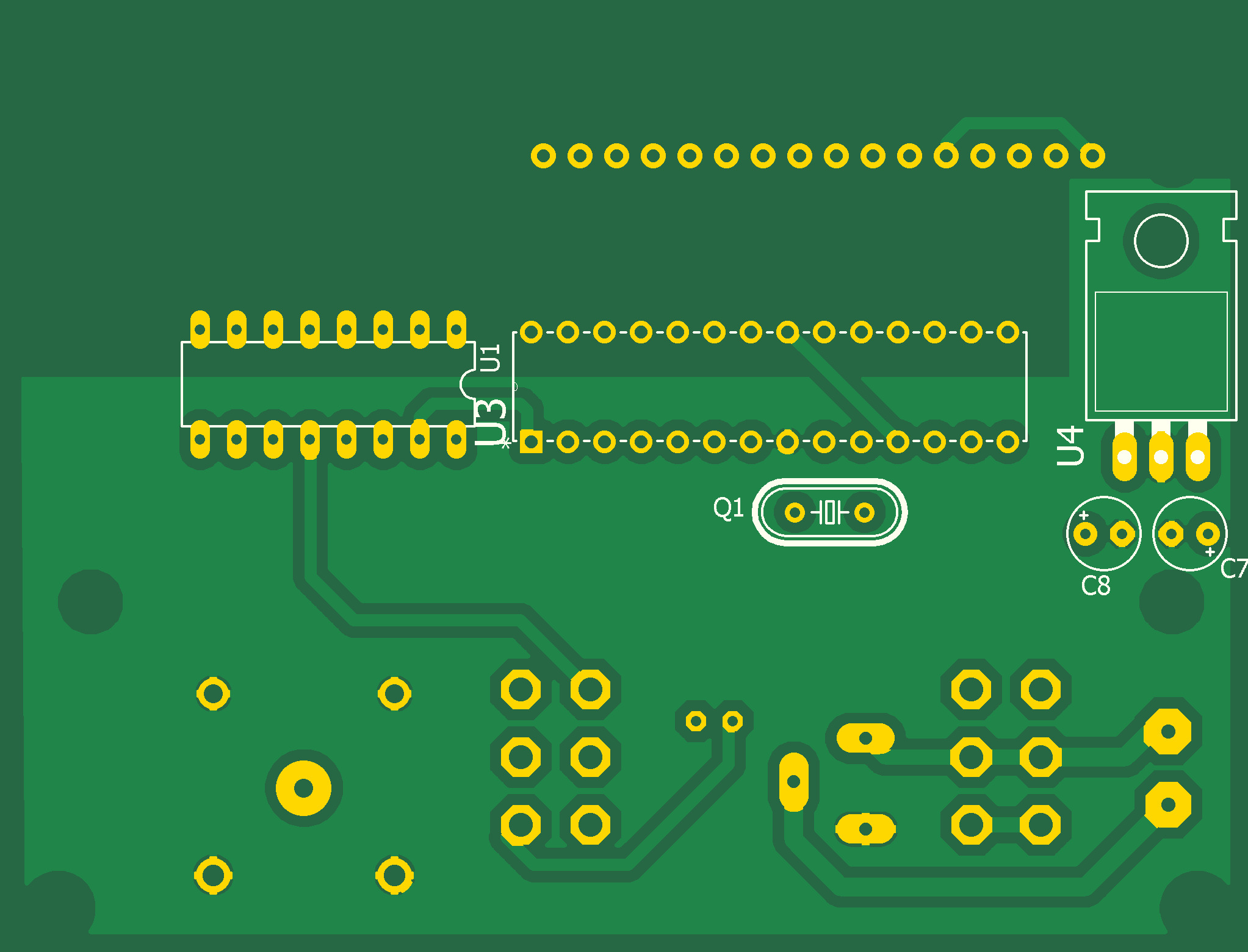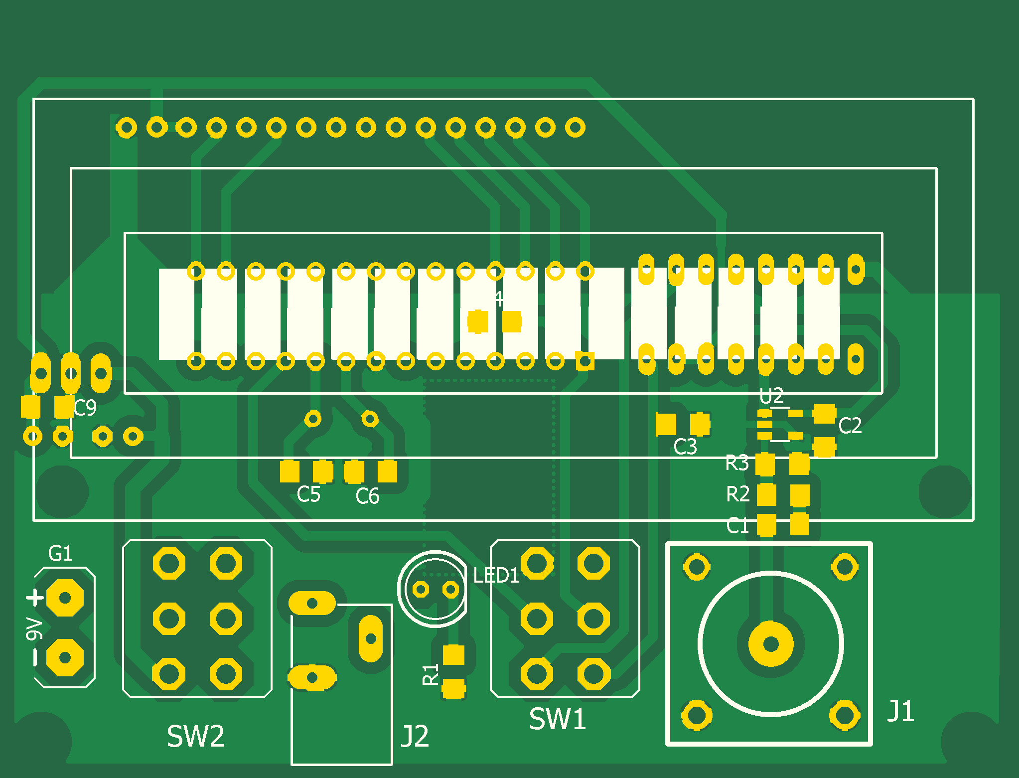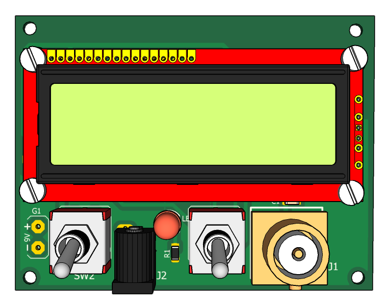 Если частота сигнала меньше 10МГц, то выключатель SW1 находится в верхнем положении и сигнал с выхода формирователя на компараторе U2 поступает прямо на измерительный вход микропроцессора RC0, если частота выше 10МГц, переключатель SW1 необходимо переключить в нижнее положение и сигнал поступает на вход микропроцессора через делитель на 10 U1.