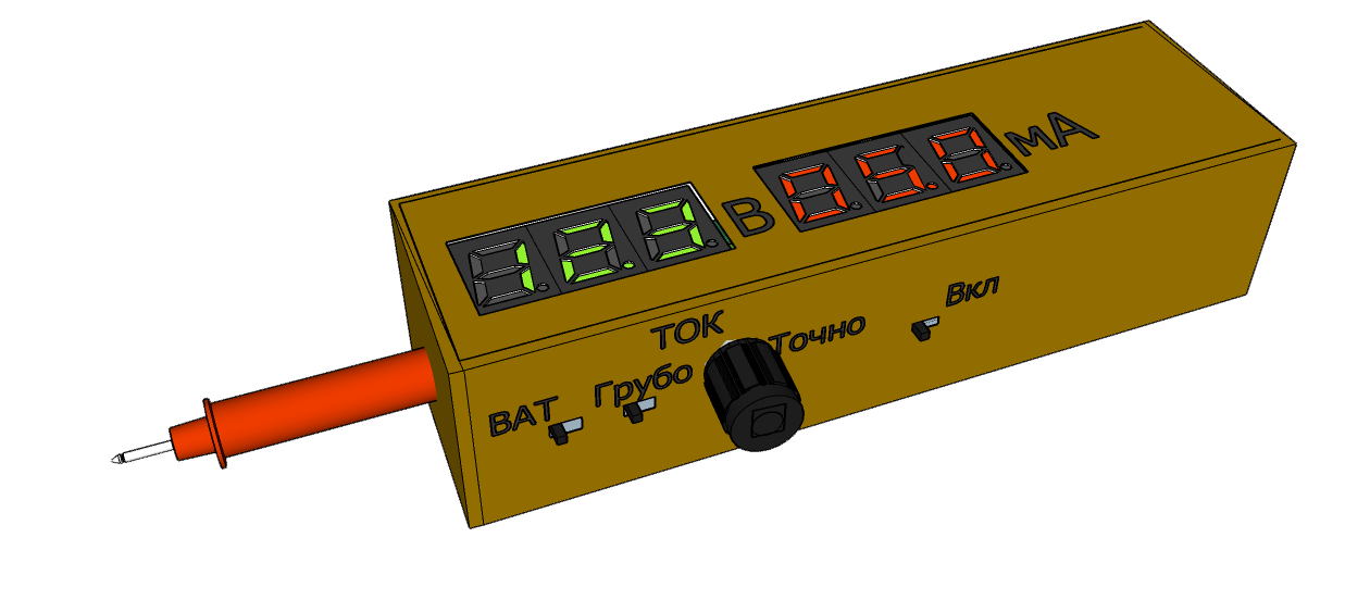 Устройство предназначено для измерения напряжения стабилизации стабилитронов от 1 до 40В при токах от 1 до 50мА. Принципиальная схема приведена ниже.